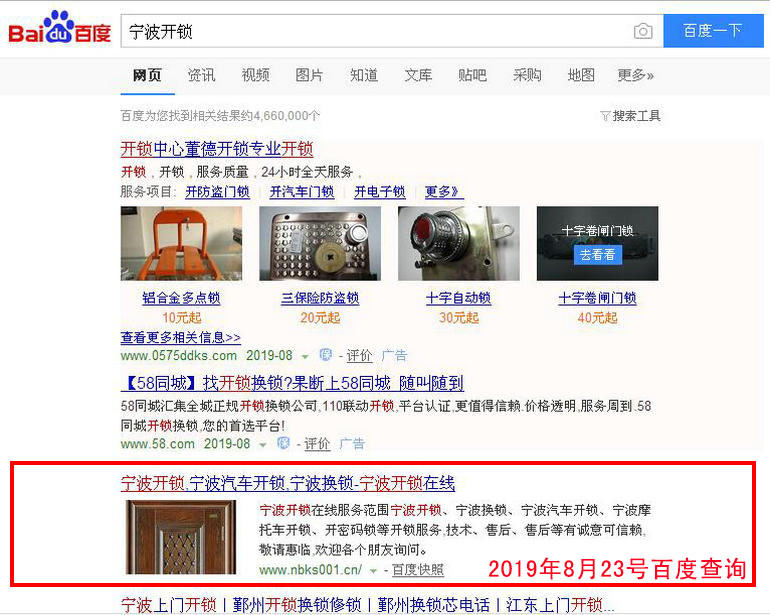 寧波開鎖 百度(PC)自然排名第1名,360搜索、搜狗、手機搜索等均也有比較好的排名...